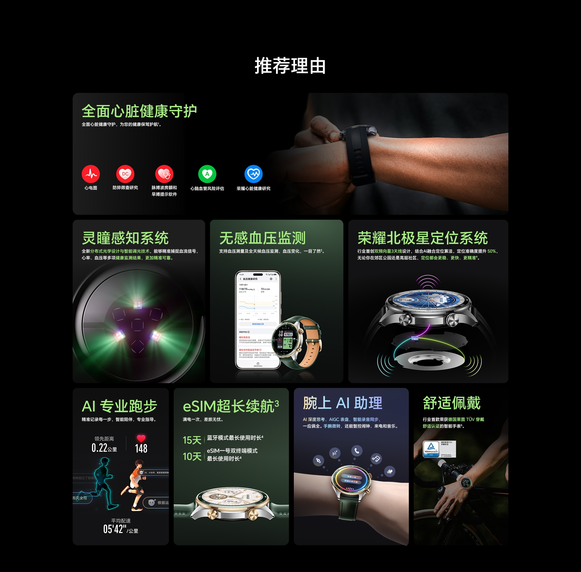 Honor, Watch 5 Pro modelinde metal kasalı ve dakika göstergeleriyle işaretlenmiş çerçeveye sahip, neredeyse klasik saat tasarımını tercih etti. Sağ tarafta digital crown ve ek bir düğme bulunuyor. Saat, deri ve spor kayış seçenekleriyle sunuluyor. Fotoğraflar, tırmanma aktivitesinin yanı sıra pusula, aktif yakılan kalori ve mevcut rakım gibi bilgileri gösteren komplikasyonları da gösteriyor.